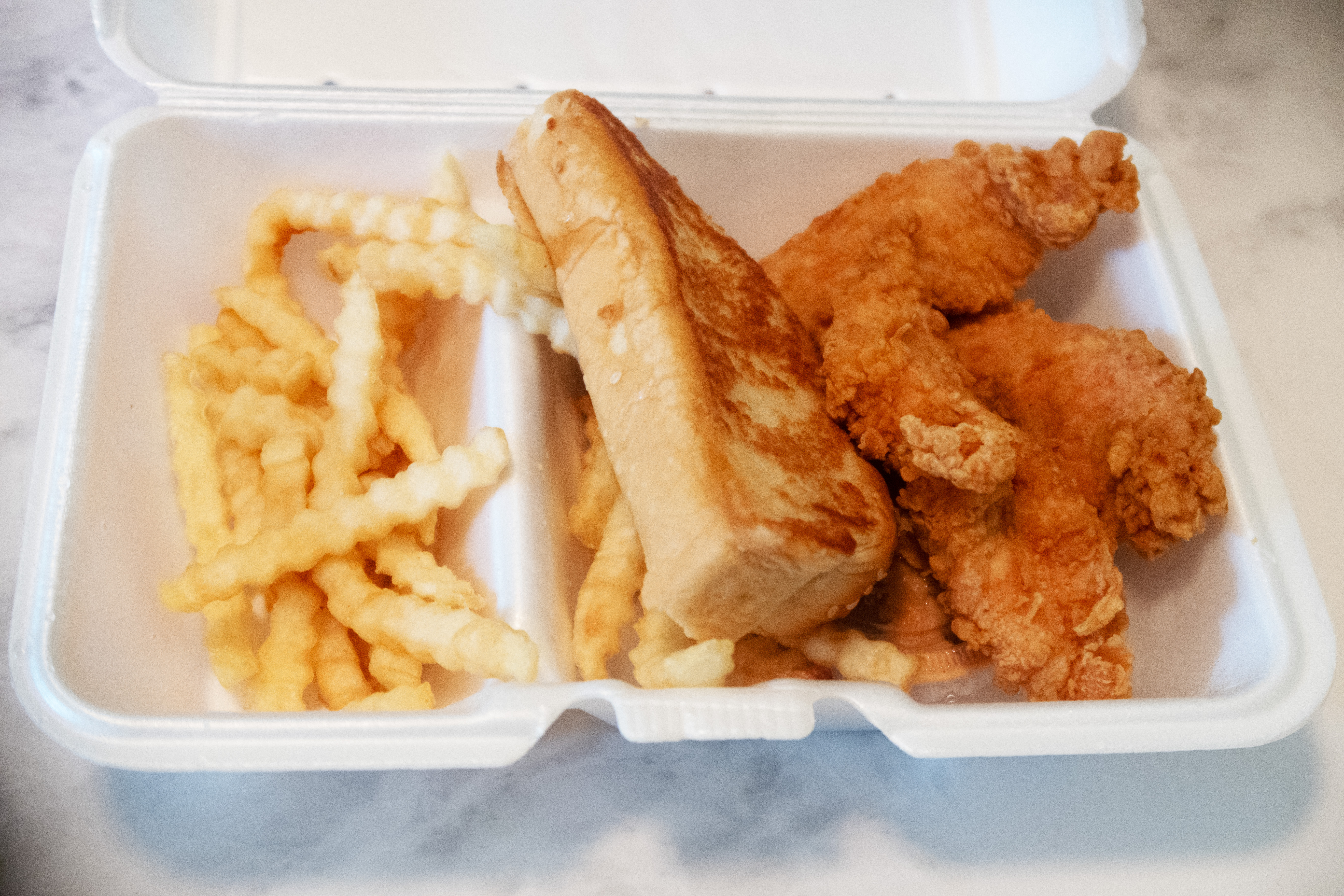 I had the pleasure of enjoying a Cane’s meal, served in a Styrofoam box, which included chicken tenders, crinkle-cut fries, assorted sauces, and toast. This meal created a cozy, American ambiance in the restaurant. The sauce was creamy and coated the chicken tenders perfectly, with a tangy, savory, and creamy flavor. The tenders were filled with juicy chicken meat, and the outside had the right amount of crispiness and crunch.