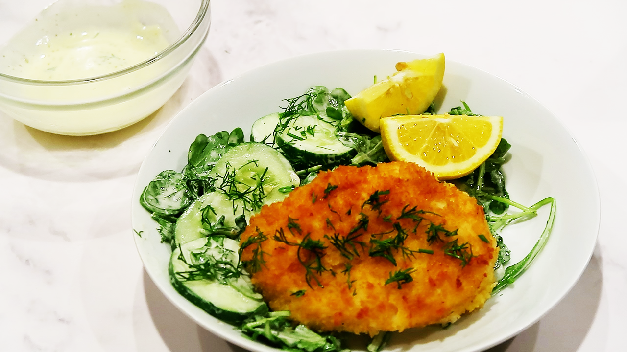 Incrusted Chicken with Cucumber Arugula Salad